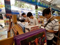 | Hội sách TPHCM 2008 thu hút đông đảo bạn đọc trẻ. Ảnh chụp tại quầy sách Walt Disney, bán toàn sách in ngoại ngữ - Ảnh: Hữu Thắng. |