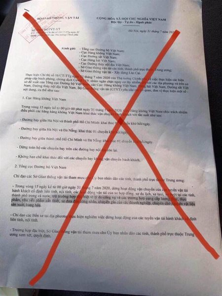 Văn bản dừng vận chuyển hành khách trên toàn quốc là giả mạo