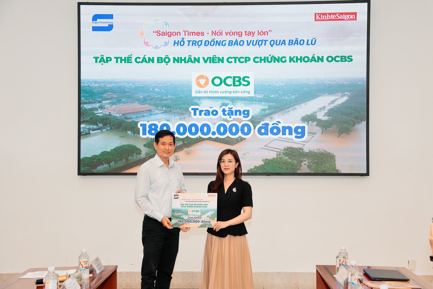 Thông qua chương trình “Saigon Times - Nối vòng tay lớn: Hỗ trợ đồng bào vượt qua bão lũ”, Tạp chí Kinh tế Sài Gòn mong muốn lan tỏa tinh thần tương thân tương ái, kết nối những tấm lòng nhân ái trong xã hội, để cùng nhau viết tiếp hành trình sẻ chia và yêu thương. Hành động thiết thực của OCBS không chỉ là sự hỗ trợ kịp thời mà còn là thông điệp mạnh mẽ về tinh thần trách nhiệm xã hội – nơi những doanh nghiệp Việt cùng chung tay vun đắp niềm tin và lan tỏa lòng nhân ái trong cộng đồng.