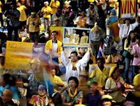 | Những người biểu tình tại sân bay quốc tế Suvarnabhumi reo hò trước tin chính phủ của Thủ tướng Somchai bị giải tán |