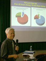 | Ông Đặng Ngọc Dinh, Giám đốc Trung tâm Nghiên cứu phát triển hỗ trợ cộng đồng, trình bày kết quả khảo sát về phòng chống tham nhũng tại Việt Nam - Ảnh: Mộng Bình |