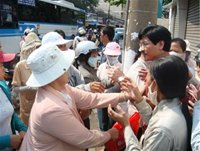 | Công nhân Công ty cổ phần Bông Bạch Tuyết đang thắc mắc chuyện nợ lương với ông Tạ Xuân Thọ, Tổng giám đốc cũ của công ty. Ảnh: ND. |