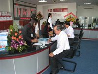 | Doanh nghiệp giao dịch tại Ngân hàng HDBank - Ảnh: HÀ CƯỜNG |