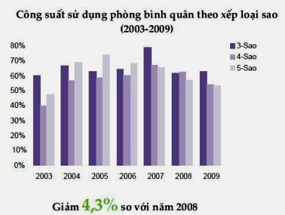 Theo báo cáo của Grant Thornton, trong năm 2009, công suất khai thác phòng ở các khách sạn 5 sao giảm bình quân 6,3%, các khách sạn 4 sao giảm 14,1%. Về giá phòng, trong năm 2009 các khách sạn 5 sao giảm bình quân 33,5%.