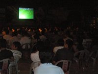 Trong khi đó, tại các quán cà phê và quán nhậu trên đường Cách Mạng Tháng Tám, quận 3, nếu những đêm trước mọi nguời vừa ăn uống vừa ngồi nhìn ra đường để ngắm người xe qua lại, thì đêm qua, hầu hết các khuôn mặt đều huớng vào bên trong, mọi ánh mắt đổ dồn vào mấy cái ti vi để theo dõi trái bóng lăn.