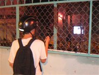| Khoảng 2.000 bạn trẻ tập trung tại sân 4A, Nhà văn hoá Thanh Niên, quận 1, TPHCM để xem trận khai mạc qua ti vi 100 inches - Ảnh: Văn Nam |