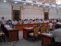 (TBKTSG Online) - Cuộc họp giao ban cuối tháng kéo dài bốn giờ tại hội trường UBND TPHCM nhằm tìm giải pháp để đối phó với khủng hoảng đang tác động đến hoạt động sản xuất, kinh doanh của TPHCM.