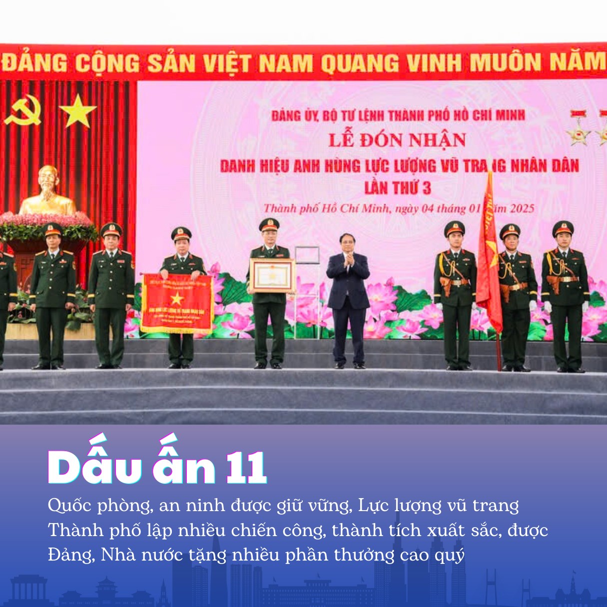 Năm 2025, Lực lượng vũ trang TPHCM và hai đơn vị thuộc Công an Thành phố (Phòng An ninh nội địa và Đội Cảnh sát hình sự đặc nhiệm thuộc Phòng Cảnh sát hình sự) vinh dự được Chủ tịch nước phong tặng danh hiệu Anh hùng Lực lượng vũ trang nhân dân. Thế trận quốc phòng - an ninh tiếp tục được củng cố vững chắc, đảm bảo an toàn tuyệt đối cho TPHCM phát triển.