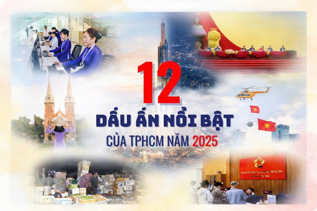 (KTSG Online) - Tối ngày 9-1, Văn phòng UBND TPHCM đã công bố 12 dấu ấn nổi bật của TPHCM năm 2025, thay vì 10 dấu ấn như mọi năm, phản ánh đầy đủ, toàn diện một năm có ý nghĩa lịch sử đặc biệt gắn với nhiều sự kiện chính trị, kinh tế, văn hóa, xã hội... của thành phố mang tên Bác trong năm vừa qua.