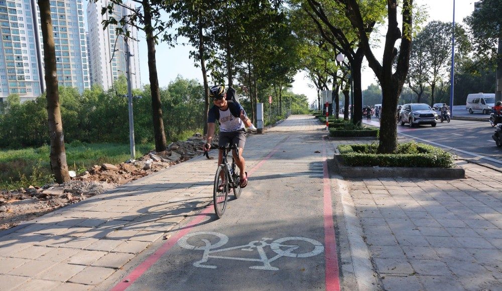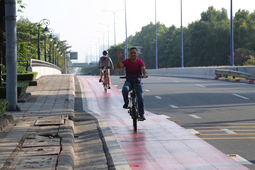 Người dân thích thú khi có làn riêng cho xe đạp.“Có làn đường riêng như thế này, tôi cảm thấy yên tâm hơn hẳn. Thậm chí, tôi có thể thong thả đạp xe, ngắm cảnh mà không còn nơm nớp lo sợ xe cộ phía sau,” anh Quang Sung chia sẻ sau khi trải nghiệm làn đường.Theo Sở Xây dựng TPHCM, dự án được triển khai theo nhiều giai đoạn. Trong đó, giai đoạn 1 tập trung xây dựng làn ưu tiên xe đạp trên đoạn đường Nguyễn Cơ Thạch và đường D1, làm cơ sở hình thành tuyến xe đạp trọng điểm của thành phố. Giai đoạn 2 sẽ tiếp tục mở rộng sau khi đánh giá hiệu quả khai thác và khi nút giao An Phú hoàn thành, hướng tới kết nối với các trục đường và không gian công cộng quan trọng khác trên địa bàn TPHCM.Trong tương lai, thành phố sẽ mở rộng mạng lưới làn xe đạp để kết nối các khu vực trung tâm thương mại, tòa nhà văn phòng, công viên, các công trình đặc trưng có giá trị lịch sử; kết nối phương tiện công cộng, hạ tầng bến bãi...