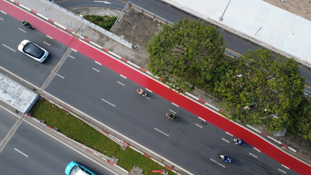 Phần làn xe đạp được cải tạo trên vỉa hè sẽ được lắp đặt biển báo cấm xe máy. Trường hợp xe máy đi vào làn này có thể bị xử phạt.Tuyến đường dài 5,7km, rộng 2m (riêng đoạn đi qua cầu rộng 1,5m), vận tốc thiết kế 20km/h. Điểm đầu công trình tại nút giao Mai Chí Thọ - Nguyễn Cơ Thạch; điểm cuối tại nút giao Mai Chí Thọ với đường D1.