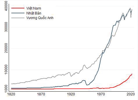 Làn sóng đổ bộ của các nước đế quốc châu Âu đã tạo ra nhiều biến cố lịch sử xô đẩy các quốc gia trong khu vực Đông Á và Đông Nam Á theo nhiều hướng khác nhau. Theo ước tính của nhà kinh tế học Angus Maddison, GDP bình quân đầu người vào năm 1820 của Việt Nam xấp xỉ bằng 0,64 lần của Nhật Bản và 0,35 lần của Vương Quốc Anh. Thống nhất đất nước năm 1975, GDP bình quân đầu người của Việt Nam xấp xỉ bằng 0,06 lần của Nhật Bản và Vương Quốc Anh. Chúng ta có thể tranh luận về tính chính xác của các con số GDP ước tính cho các nền kinh tế xa xưa nhưng những ngã rẽ của lịch sử là thực tế.