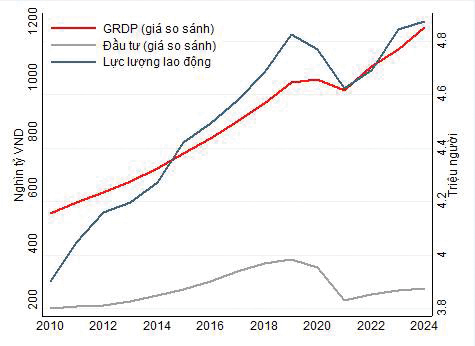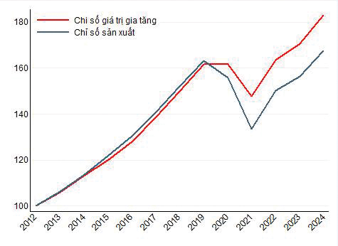 Giai đoạn 2012-2019 là giai đoạn mà lực lượng lao động di cư đến thành phố tăng mạnh đồng thời sản lượng công nghiệp tăng nhanh hơn giá trị gia tăng, phản ánh sự tăng trưởng của các ngành thâm dụng lao động với giá trị gia tăng thấp, ví dụ như dệt và trang phục. Đến giai đoạn dịch Covid-19, sản lượng lại giảm sâu hơn giá trị gia tăng. Từ sau đại dịch, sản lượng phục hồi chậm, nhưng là tín hiệu tích cực cho thấy đang có sự chuyển dịch sang các ngành công nghiệp ứng dụng công nghệ và giá trị gia tăng cao.