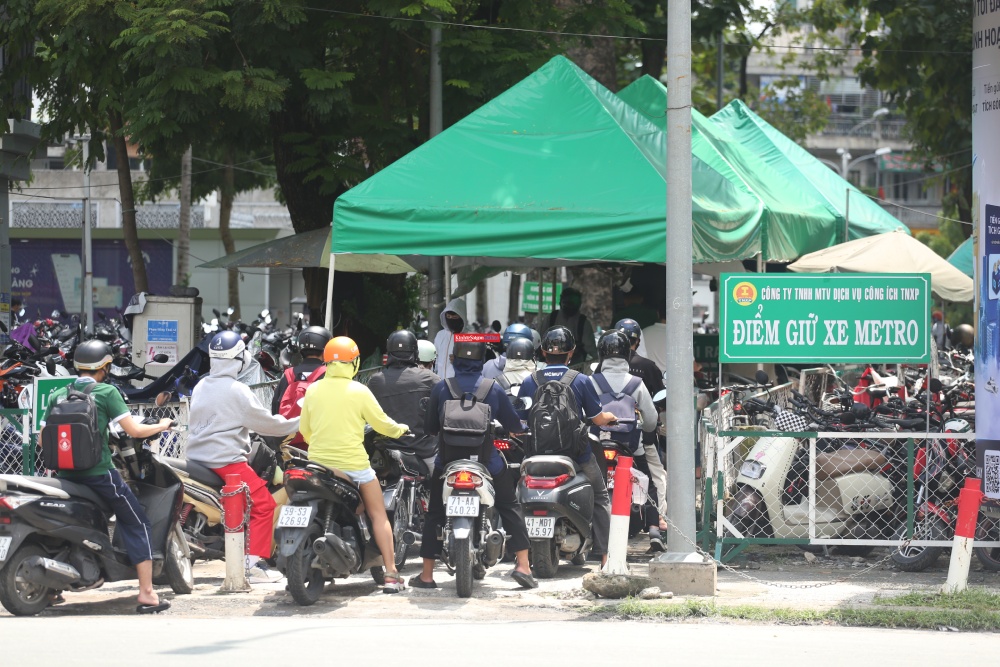 Theo ghi nhận của Kinh tế Sài Gòn Online, tại các nhà ga như Bến Thành, Thủ Đức, Khu Công nghệ cao, Suối Tiên hay Đại học Quốc gia, bãi giữ xe thường xuyên kín chỗ từ rất sớm. Mới khoảng 7 giờ 30, nhiều điểm đã treo bảng thông báo ngừng nhận xe.Tại ga Bến Thành, mỗi buổi sáng, hàng dài xe máy nối đuôi nhau chờ vào bãi giữ.Bảng "ngưng nhận xe" được dựng lên từ rất sớm.Bên trong, bãi xe chật kín, không còn chỗ trống.Nhân viên phải liên tục di chuyển, sắp xếp lại từng chiếc xe để tận dụng tối đa diện tích, nhưng vẫn không thể đáp ứng kịp lượng xe đổ về ngày một nhiều.Tại ga Bình Thái, khu vực giữ xe trong nhà ga đã kín chỗ, nhiều xe buộc phải gửi ở các bãi xe phía xa bên ngoài.Tại ga Đại học Quốc gia, nơi có lượng sinh viên di chuyển lớn mỗi ngày, các bãi giữ xe tại đây cũng rơi vào tình trạng quá tải.Bạn Tú Anh (sinh viên) chia sẻ “Nếu đến sau 8 giờ sáng, gần như không còn chỗ gửi trong bãi của ga Metro Đại học Quốc gia. Những hôm đến sớm thì phải xếp hàng dài, còn trễ thì đành gửi ở ngoài, mà giá thì cao hơn trong bãi rất nhiều”.Một nhân viên tại bãi xe metro cho biết, lượng xe bắt đầu kín chỗ từ khoảng 7 giờ 30. “Từ thời điểm đó, chỉ khi nào có xe ra thì mới cho xe khác vào được”, người này nói. Mức giá giữ xe tại đây do lực lượng Thanh niên xung phong quản lý, hiện là 4.000 đồng/lượt.