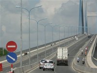| Cầu Phú Mỹ, cây cầu nối từ quận 7 sang quận 2 đã được đưa vào sử dụng từ tháng 9-2009- Ảnh: Anh Quân |