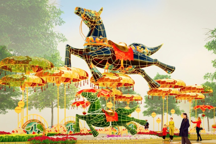 Sau 12 năm, linh vật ngựa chính thức trở lại đại lộ Nguyễn Huệ với tạo hình mới, kết hợp yếu tố truyền thống và công nghệ hiện đại. Không gian được bố cục theo ba chương gồm Xuân hội nhập, Cội nguồn gấm hoa và Tương lai vững bước.
