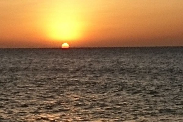 Bình minh dưới lòng biển chuẩn bị nhô lên. Nước biển xanh thẫm tạo thành một vạch thẳng tắp ngăn giữa bầu trời với mặt đất. Trên cao vút, lẫn giữa màu mây xanh ngăn ngắt dần điểm vài ráng mây hồng. Ngước lên phía trên những trảng cát dài, thả neo giữa một đám mây xanh trong vắt là mảnh trăng nhỏ hình như còn lưu luyến chưa muốn rời đi.