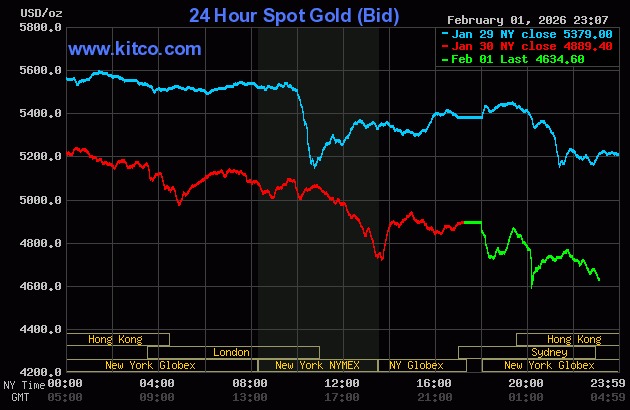 Kim loại quý này tiếp tục đi xuống sau khi đạt mức cao kỷ lục, vượt mốc 5.500 đô la/ounce vào tuần trước, trong bối cảnh xuất hiện các dấu hiệu ổn định chính trị tại Mỹ. Tính đến 10 giờ 45 phút sáng nay (2-2), giá vàng thế giới giảm khoảng 220 đô la/ounce, tương đương 4,5%, so với mức chốt phiên hôm qua.