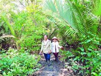 | Cô Tuyết dẫn khách "xông" vô rừng bần đầy bùn sinh và gai góc. Ảnh: PSL. |