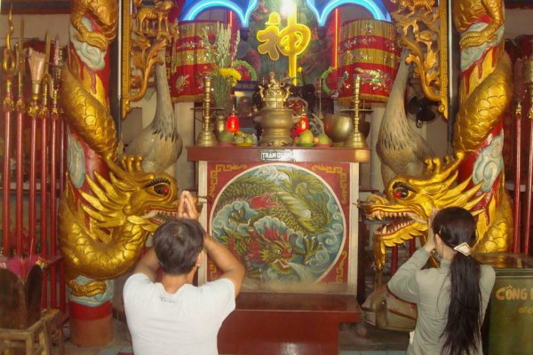 | Du khách dâng hương trong đình Thới Sơn. Ảnh: PSL |