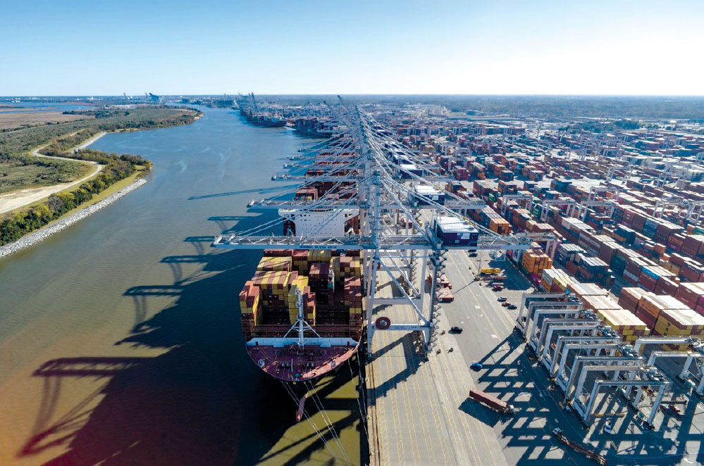 Cảng Savannah thuộc cảng Georgia của bang Georgia là một trong những cảng tốt nhất kết nối Mỹ với thị trường thế giới, với 35 chuyến tàu mỗi tuần, 42 chuyến đường sắt hai tầng mỗi tuần và 14.000 lượt xe tải ra vào cảng mỗi ngày. Cảng Georgia lên kế hoạch đầu tư 4,5 tỉ đô la từ nguồn vốn của cảng trong mười năm tới. Theo đó, sẽ bổ sung năm bến tàu lớn mới tại Savannah để đáp ứng nhu cầu tăng trưởng trong tương lai.