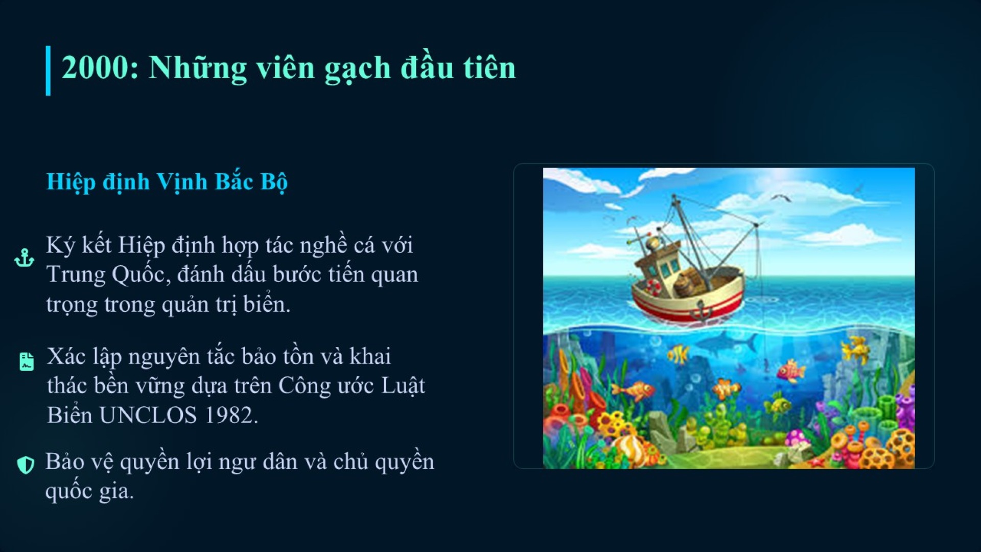 - Hiệp định hợp tác nghề cá ở Vịnh Bắc Bộ giữa Việt Nam và Trung Quốc (2000)