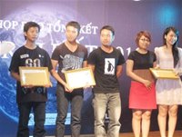 | Nhóm các bạn trẻ đoạt giải trong cuộc thi video về Giờ Trái đất. Ảnh: Phi Tuấn |