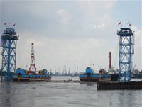 | Đốt hầm Thủ Thiêm cuối cùng được dìm xuống sông Sài Gòn hôm 5-6. Ảnh: Anh Quân |