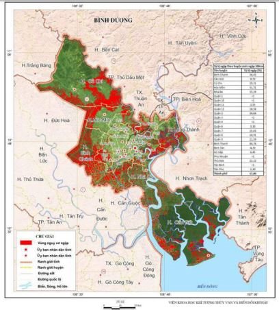 | Kịch bản nước biển dâng 100 cm gây ngập ở TPHCM của Bộ Tài nguyên và Môi trường ban hành năm 2016. |
