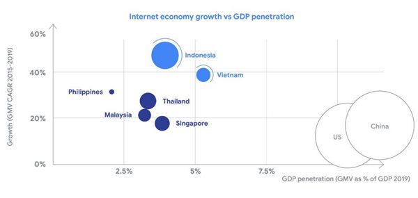 | Nền kinh tế số Việt Nam đang tăng trưởng mạnh. Nguồn: Báo cáo "e-Conomy Southeast Asia 2019" |